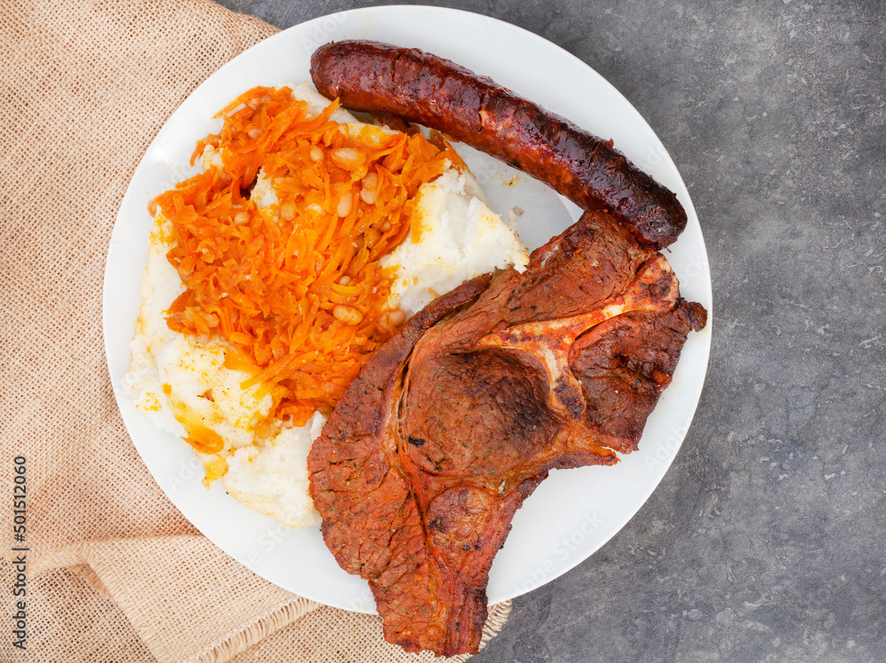 Indulge in the true taste of South Africa with our hearty and satisfying plate. A generous helping of soft, fluffy pap paired with the zesty kick of homemade chakalaka, served alongside tender, flame-grilled braai meat, bursting with smoky, juicy flavor. This plate is a celebration of tradition, perfect for anyone who loves comfort food with a soulful twist.